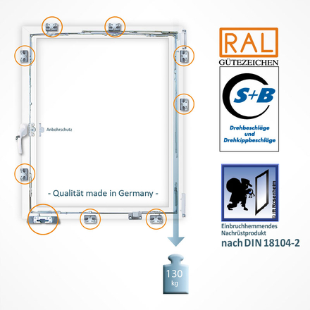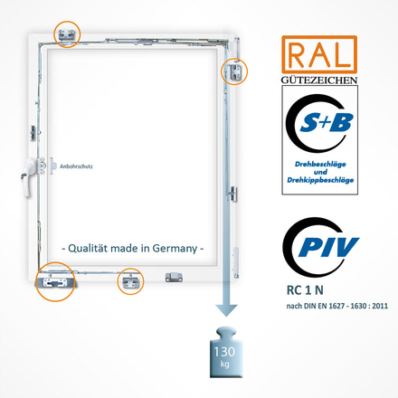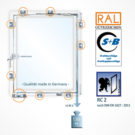 Geprüftes Sicherheitsfenster nach DIN EN 1627 : 2011 RC 2 Merkmale: