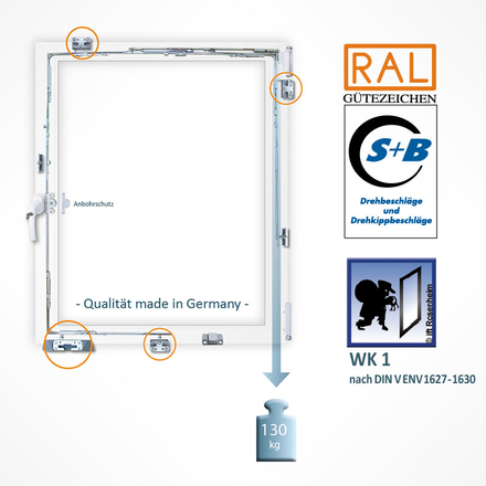 Geprüftes Sicherheitsfenster nach DIN V ENV 1627 - 1630 WK 1 Merkmale: